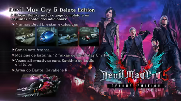 Um novo episódio na lendária série de ação, Devil May Cry 5 traz junto sua clássica mistura de ação turbinada com personagens originais de outro mundo e a mais nova tecnologia de jogos Capcom para trazer uma obra de arte de ação e aventura visualmente inovadora.